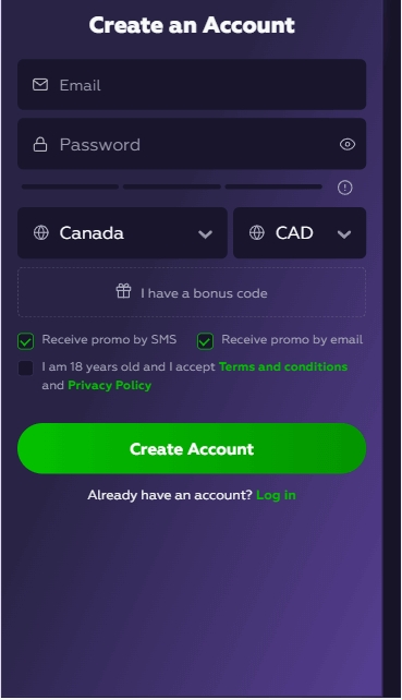Log in to your Playfina account or sign up for a new account if you don't have one already.